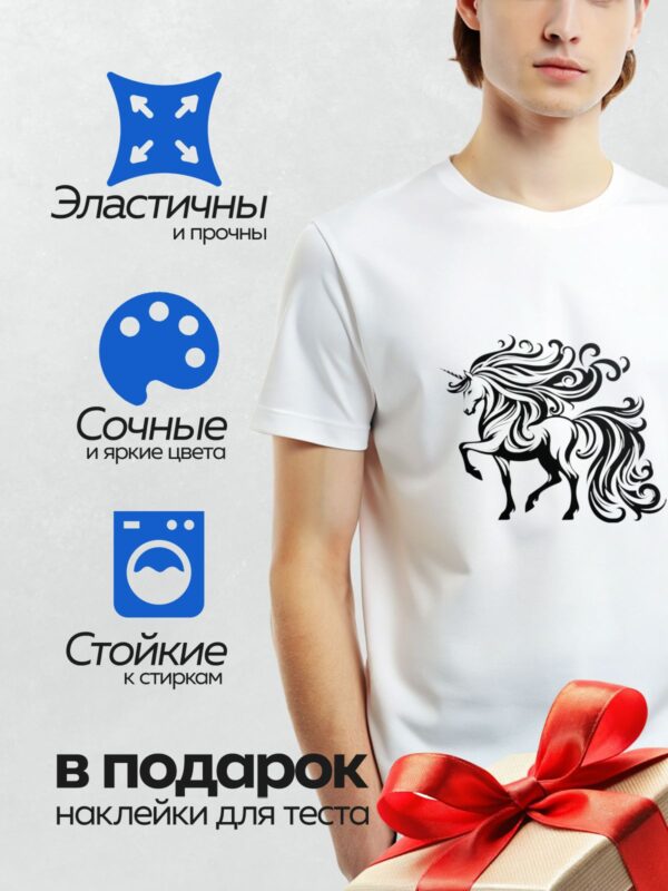 Термонаклейка на одежду DTF / Стилизованный единорог с длинной гривой и хвостом.