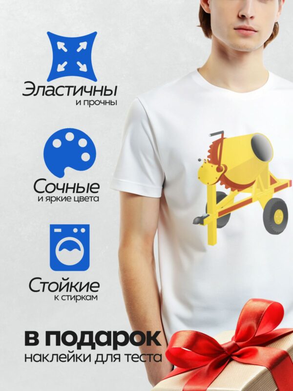Термонаклейка на одежду DTF / Мультяшная бетономешалка ярко-жёлтого цвета.