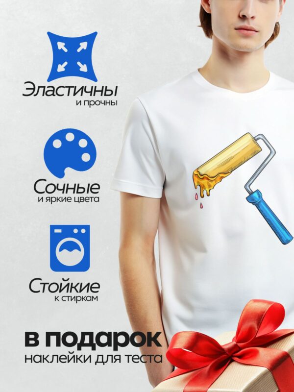 Термонаклейка на одежду DTF / Малярный валик с желтой краской и синей ручкой.