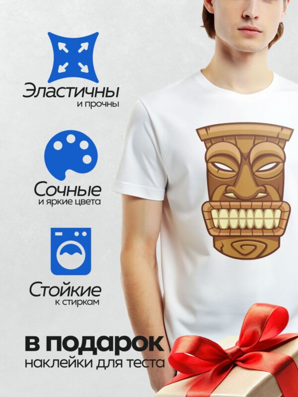 Термонаклейка на одежду DTF / Мультяшная маска тики с большими белыми зубами.