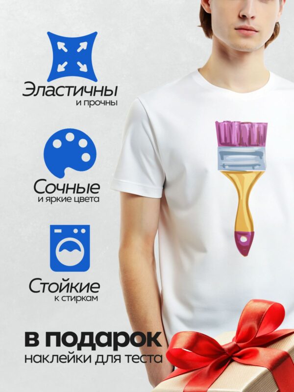 Термонаклейка на одежду DTF / Малярная кисть с розовой краской, яркая и мультяшная.