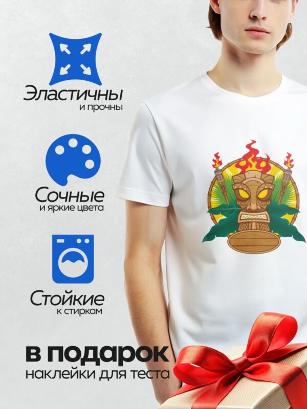 Термонаклейка на одежду DTF / Маска тики, факелы, серф, гибискус, тропики.