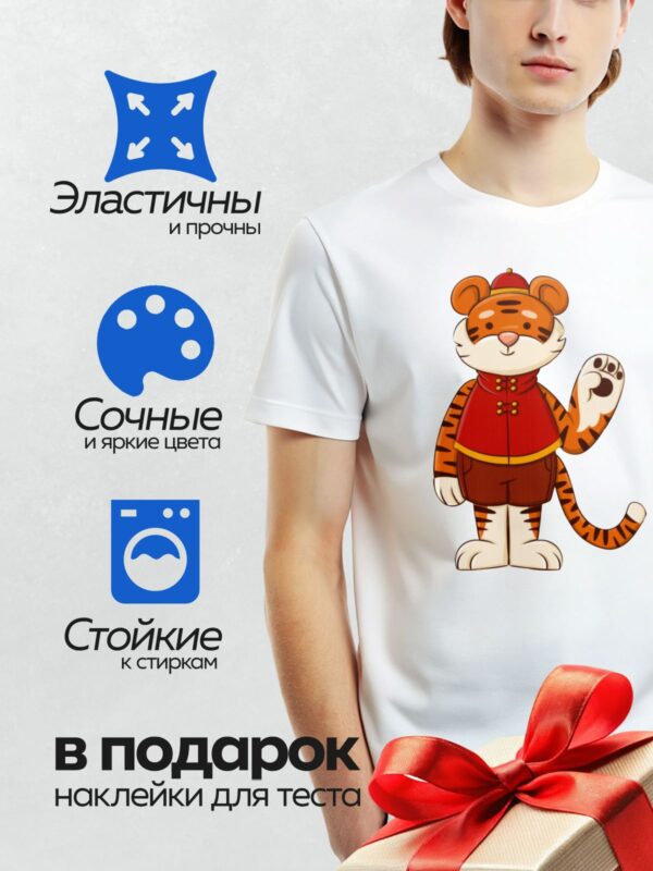 Термонаклейка на одежду DTF / Мультяшный тигр в традиционном китайском костюме.