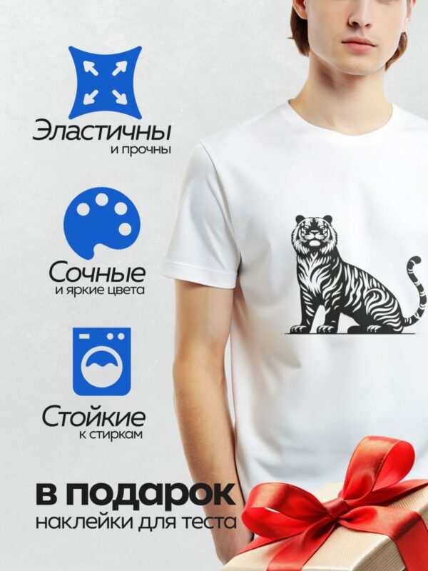 Термонаклейка на одежду DTF / Стилизованный черно-белый тигр, сидящий в профиль.