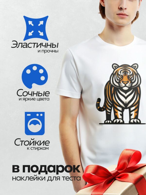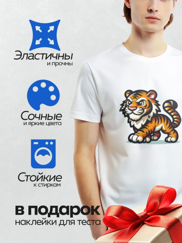Термонаклейка на одежду DTF / Стилизованный мультяшный тигр с яркими полосами.