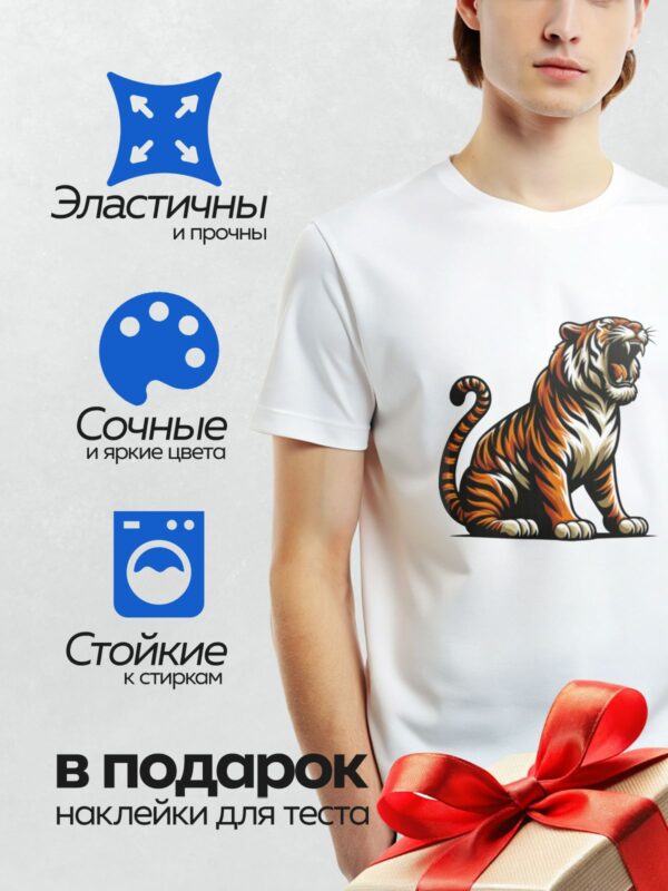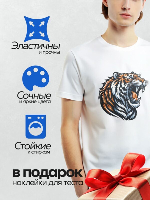 Термонаклейка на одежду DTF / Стилизованный тигр с открытой пастью, яркий и динамичный.