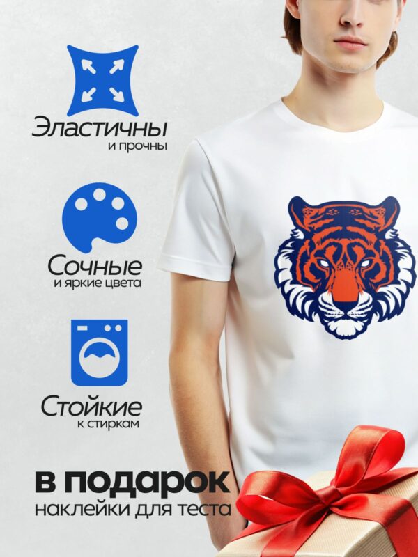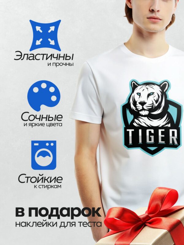 Термонаклейка на одежду DTF / Логотип с головой тигра и надписью “TIGER”.