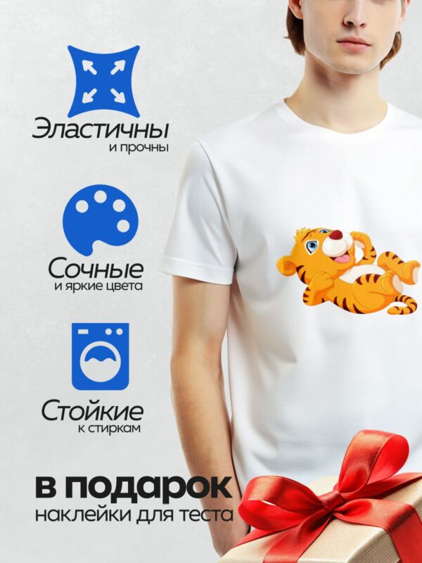 Термонаклейка на одежду DTF / Мультяшный тигрёнок с яркими полосками и большими глазами.