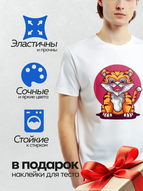 Термонаклейка на одежду DTF / Мультяшный тигр с большими глазами и яркой улыбкой.