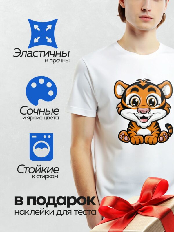 Термонаклейка на одежду DTF / Милый мультяшный тигрёнок с большими глазами и улыбкой.
