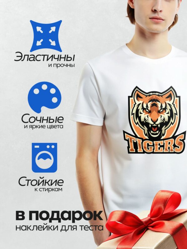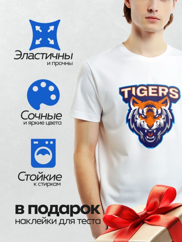 Термонаклейка на одежду DTF / Логотип с головой тигра и надписью “TIGERS”.