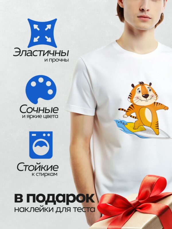 Термонаклейка на одежду DTF / Мультяшный тигрёнок на серфе в море.