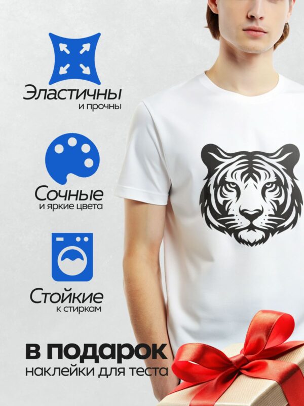 Термонаклейка на одежду DTF / Стилизованный черно-белый тигр, графический дизайн.