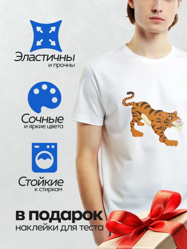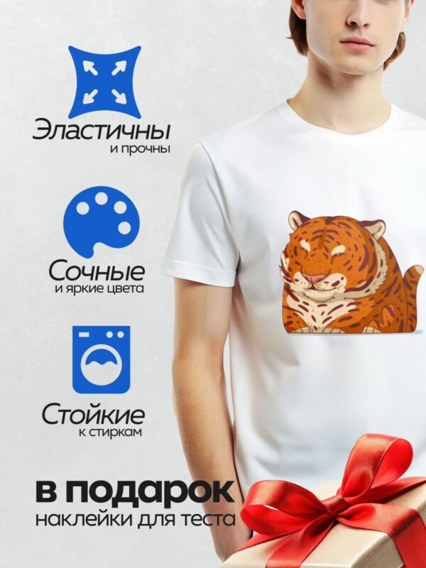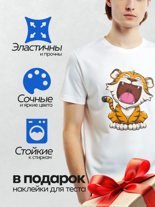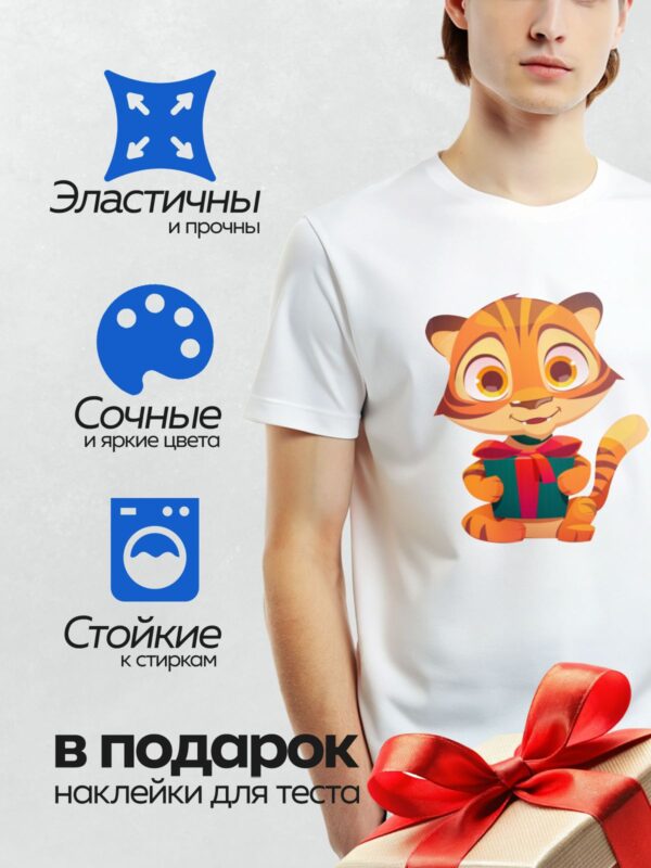 Термонаклейка на одежду DTF / Мультяшный тигрёнок с подарочной коробкой.
