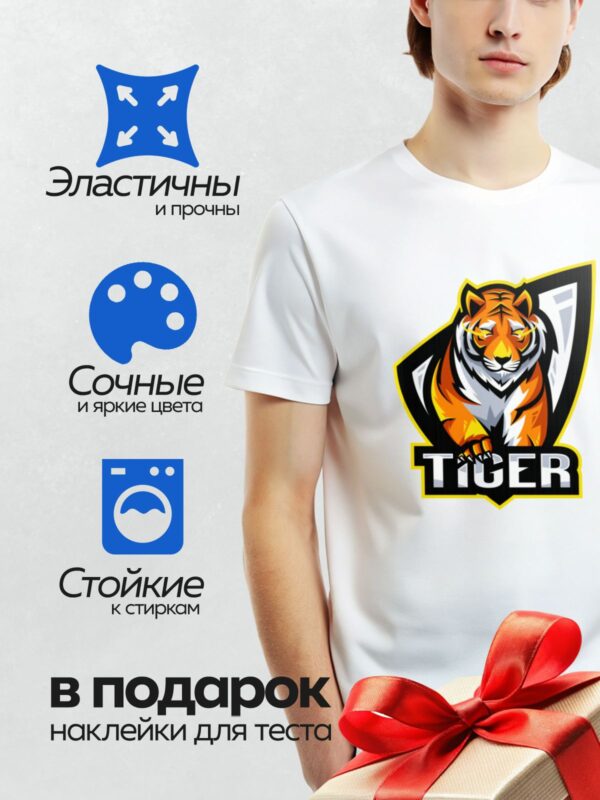Термонаклейка на одежду DTF / Эмблема с ярким тигром и надписью “TIGER”.