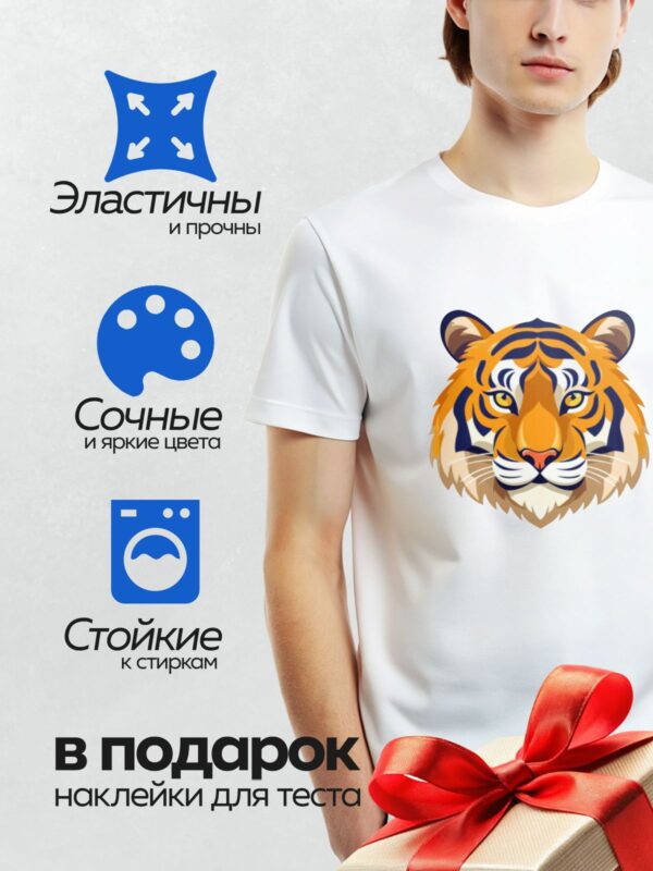 Термонаклейка на одежду DTF / Стилизованная голова тигра с яркими оранжевыми полосами.