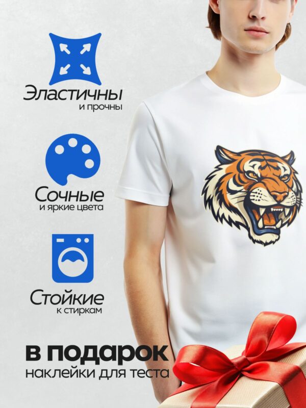 Термонаклейка на одежду DTF / Стилизованный тигр с открытой пастью и яркими глазами.