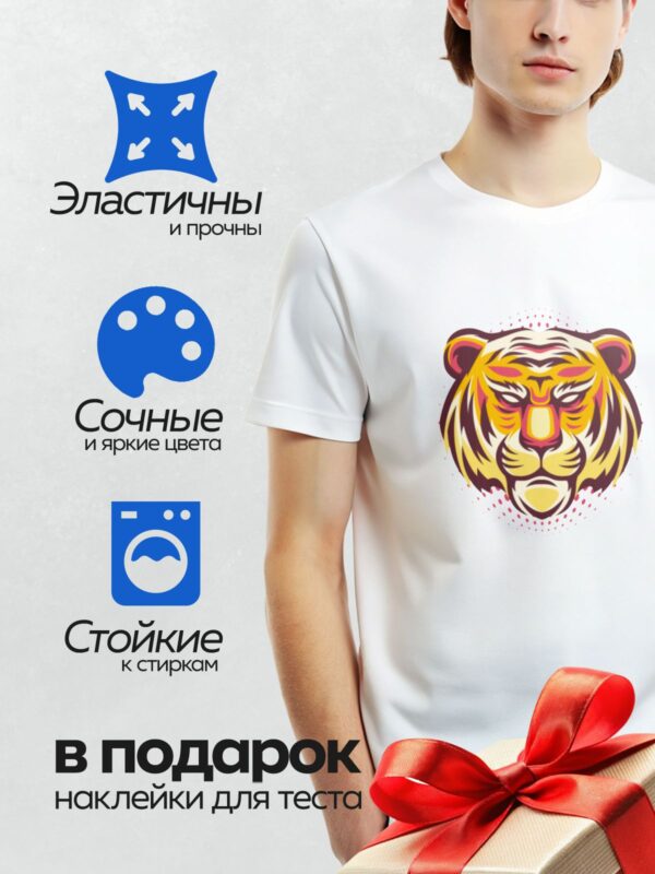 Термонаклейка на одежду DTF / Стилизованная голова тигра в ярких цветах.