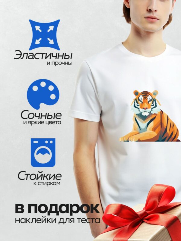 Термонаклейка на одежду DTF / Стилизованный тигр с яркими оранжевыми глазами.