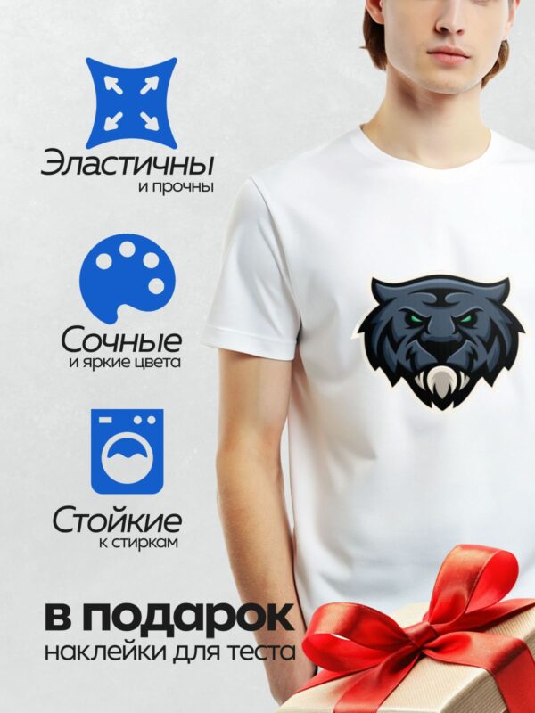 Термонаклейка на одежду DTF / Стилизованная голова пантеры с зелёными глазами.