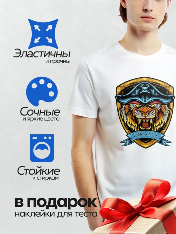 Термонаклейка на одежду DTF / Тигр в пиратской шляпе с черепом и костями.