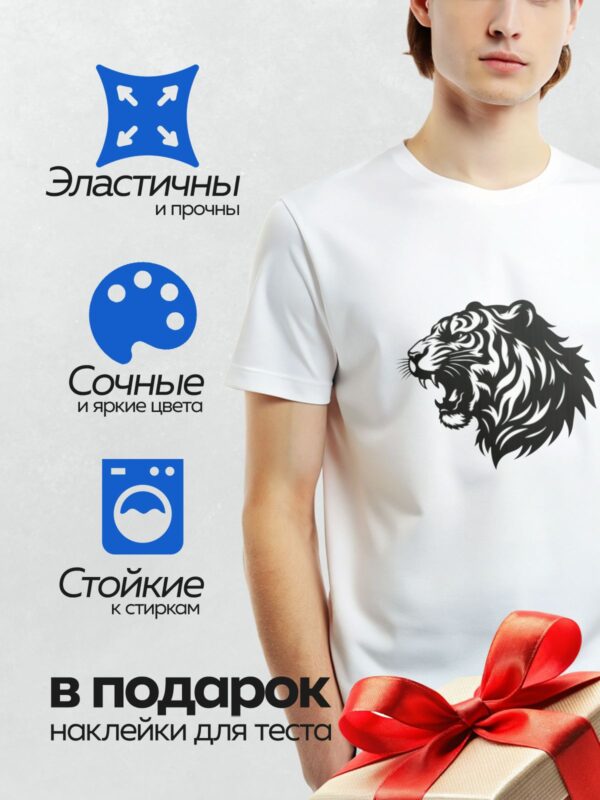 Термонаклейка на одежду DTF / Стилизованный черно-белый тигр с когтями.