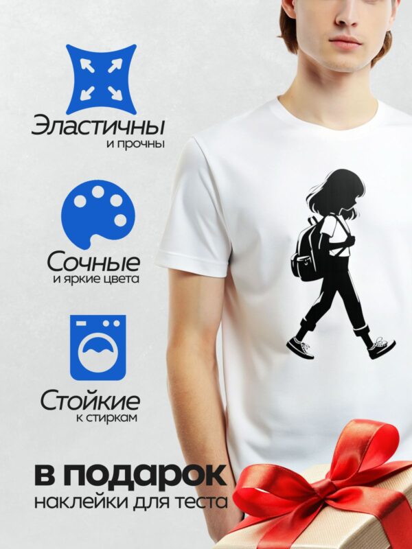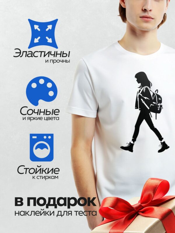 Термонаклейка на одежду DTF / Силуэт девушки с рюкзаком, идущей по улице.