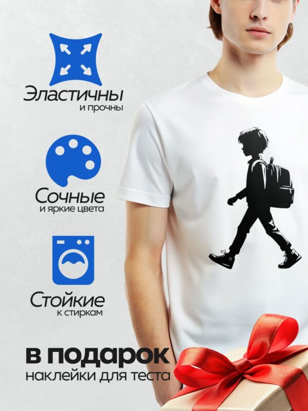 Термонаклейка на одежду DTF / Силуэт мальчика с рюкзаком, идущий вперёд.