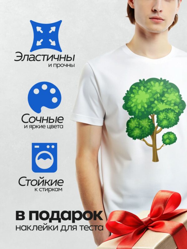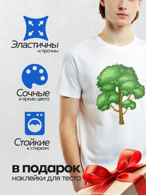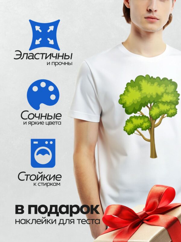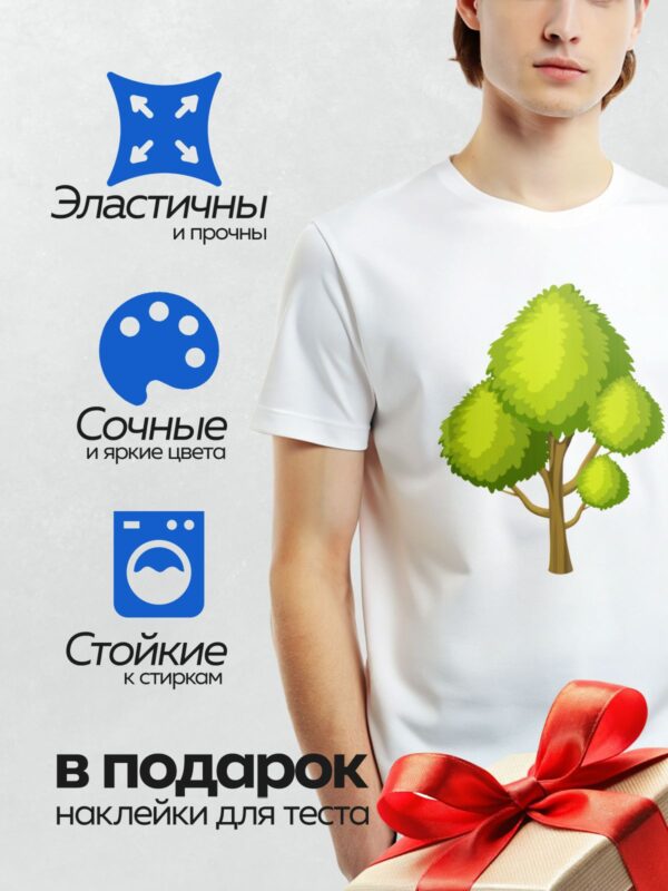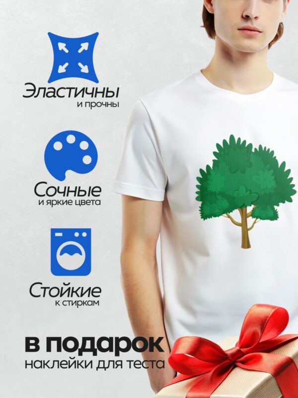 Термонаклейка на одежду DTF / На изображении показано дерево с густой зелёной кроной и коричневым стволом.