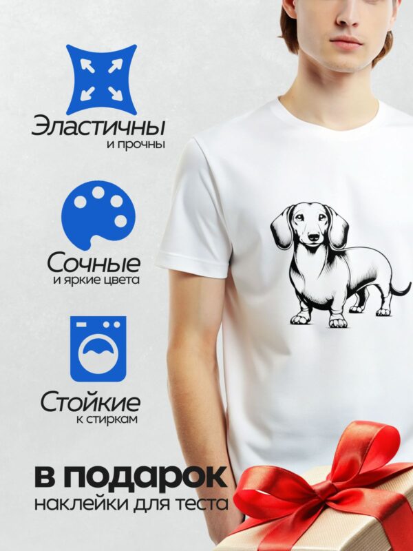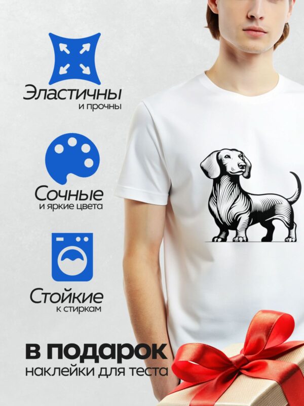 Термонаклейка на одежду DTF / Такса в стиле гравюры: изящная и детализированная.