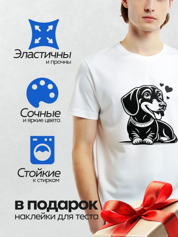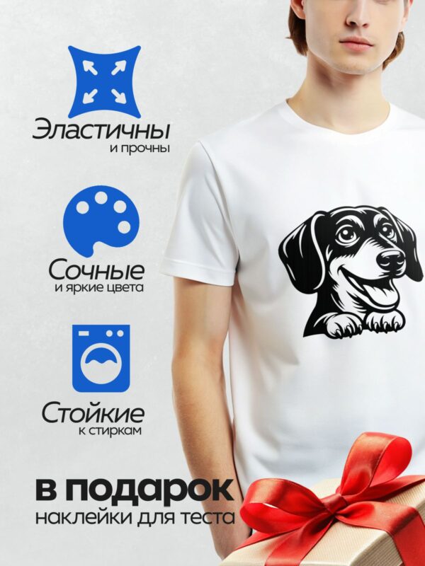 Термонаклейка на одежду DTF / Черно-белая такса с выразительными глазами и длинными ушами.