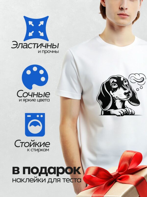 Термонаклейка на одежду DTF / Такса с задумчивым взглядом, облачко мысли.