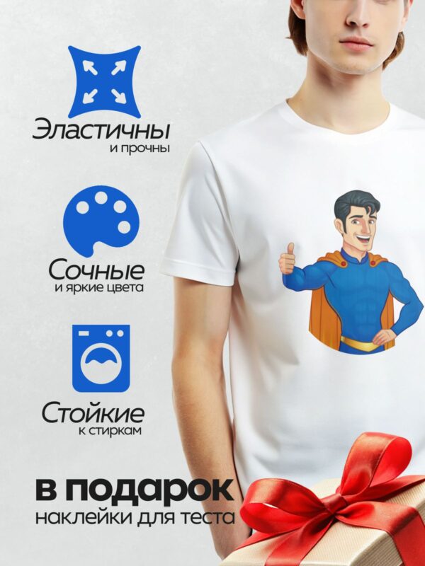 Термонаклейка на одежду DTF / Мультяшный супергерой в синем костюме и желтом плаще.