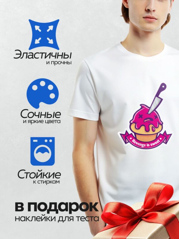 Термонаклейка на одежду DTF / Кекс с ножом и надписью “Revenge is sweet”.