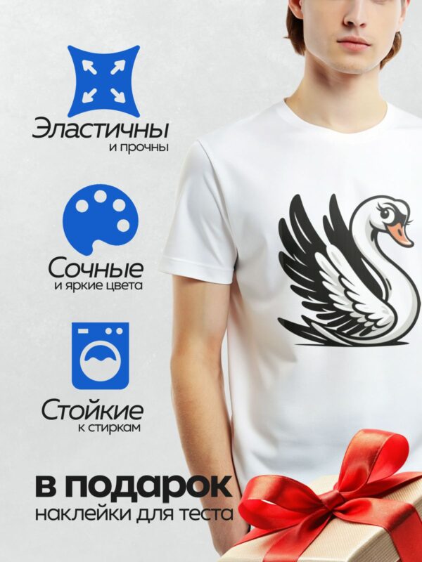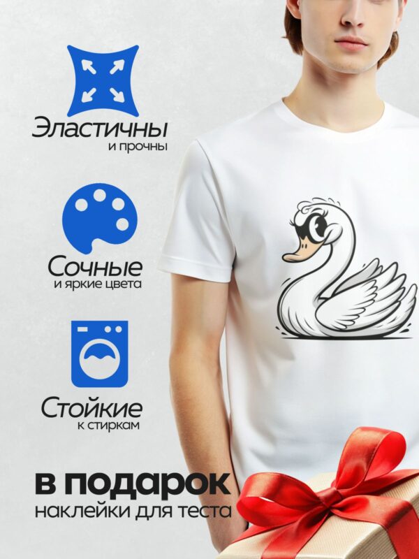 Термонаклейка на одежду DTF / Стилизованный белый лебедь с большими глазами.