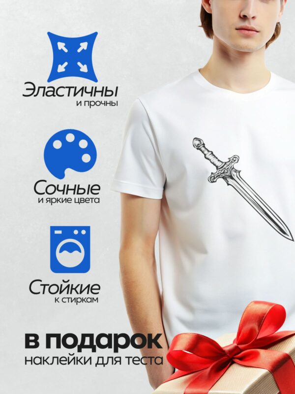 Термонаклейка на одежду DTF / Меч с декоративной рукоятью и длинным клинком.