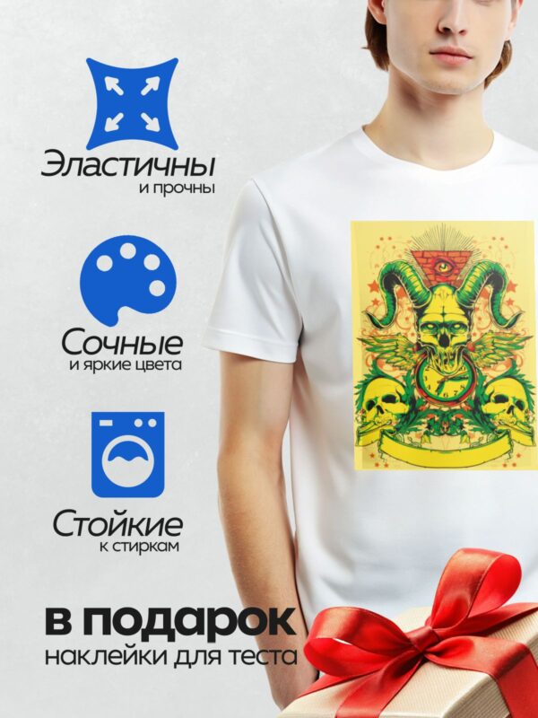 Термонаклейка на одежду DTF / Череп с рогами, часы, глаз в треугольнике, крылья, звёзды.