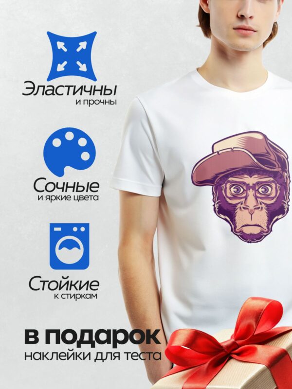 Термонаклейка на одежду DTF / Обезьяна в очках и бейсболке, стилизованный рисунок.