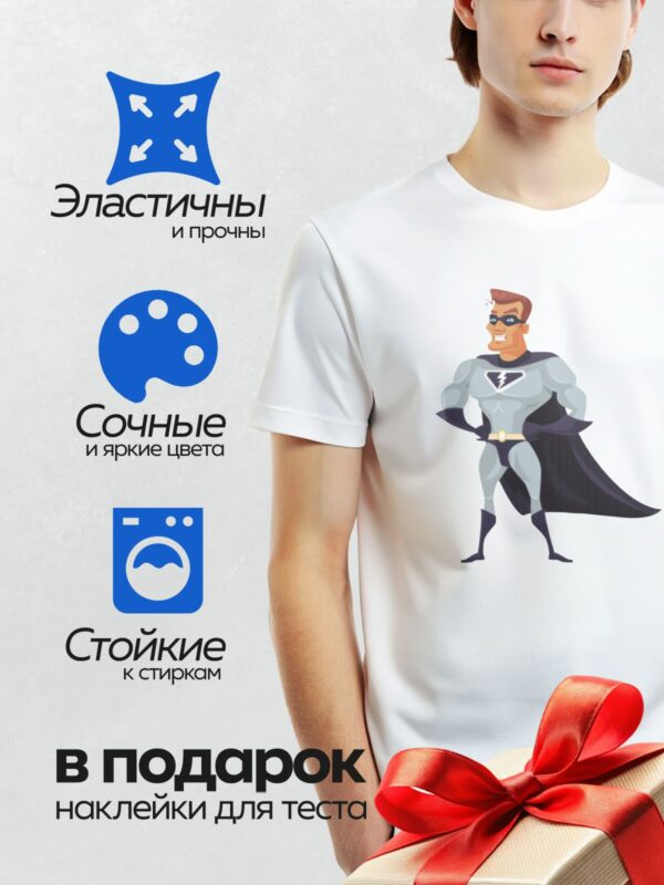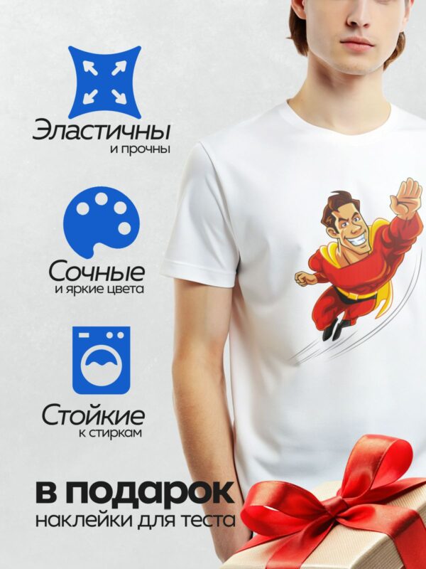 Термонаклейка на одежду DTF / Мультяшный супергерой в красном костюме и плаще.