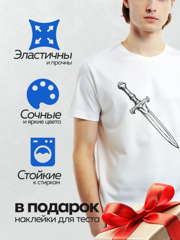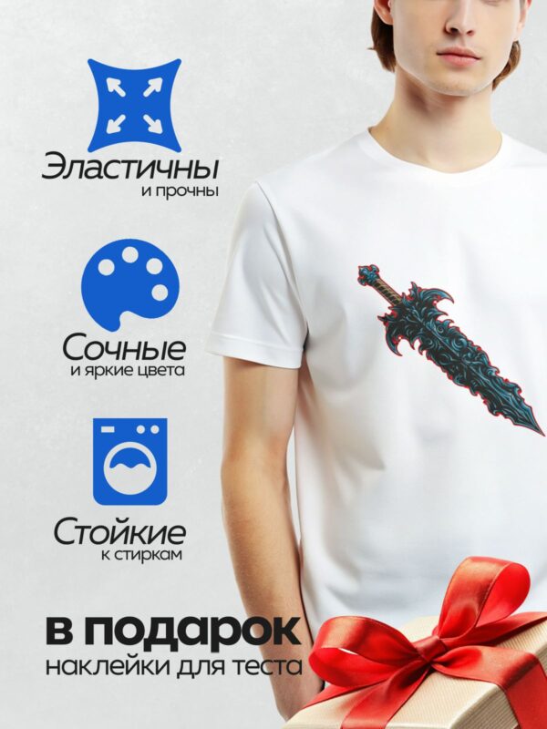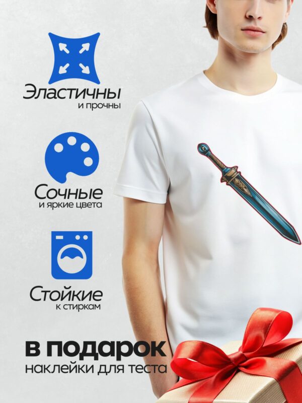 Термонаклейка на одежду DTF / На изображении представлен стилизованный меч с декоративными элементами на рукояти.