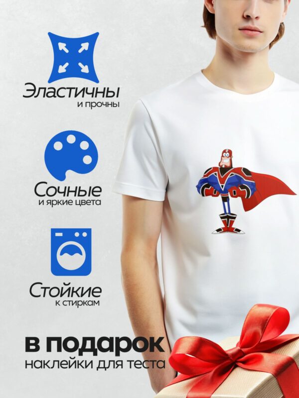 Термонаклейка на одежду DTF / Мультяшный супергерой в красном костюме и плаще.