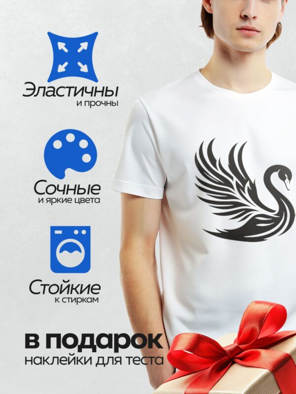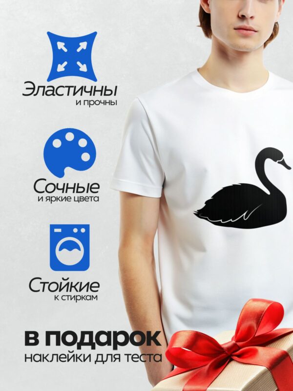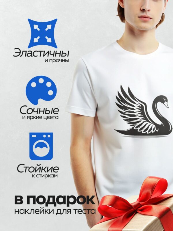 Термонаклейка на одежду DTF / Черно-белый лебедь в минималистичном стиле.