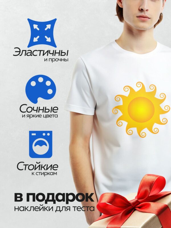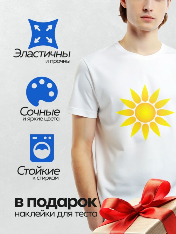 Термонаклейка на одежду DTF / Солнце с желтыми лучами, стилизованное и яркое.