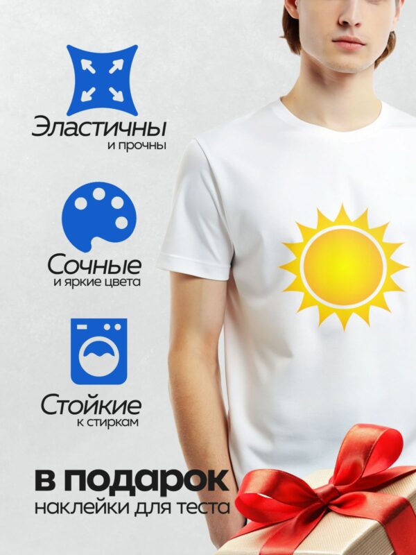 Термонаклейка на одежду DTF / Яркое солнце с разноцветными лучами на белом фоне.