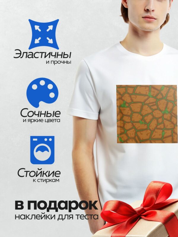 Термонаклейка на одежду DTF / Мультяшная текстура каменной стены с тенями.