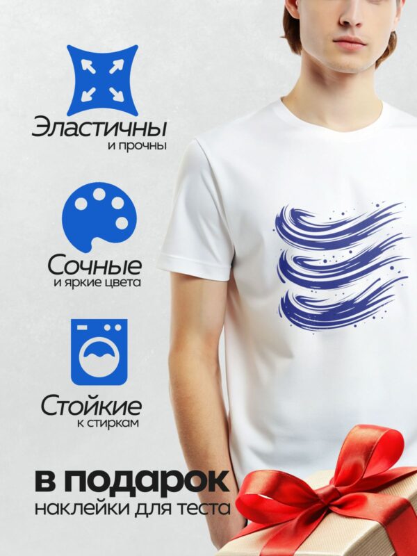 Термонаклейка на одежду DTF / Синие мазки кистью на белом фоне, абстрактный узор.