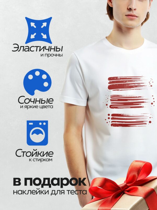 Термонаклейка на одежду DTF / Красные мазки кисти с каплями краски на белом фоне.