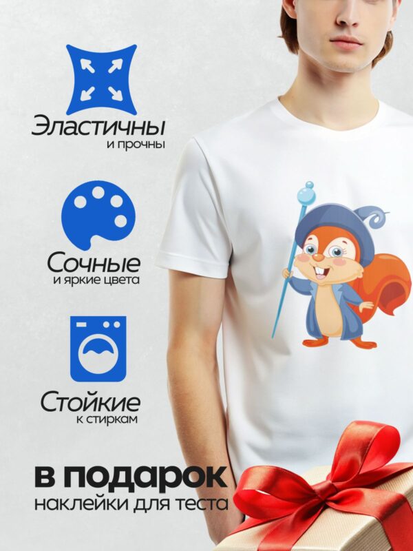 Термонаклейка на одежду DTF / Мультяшная белка в шляпе волшебника с посохом.