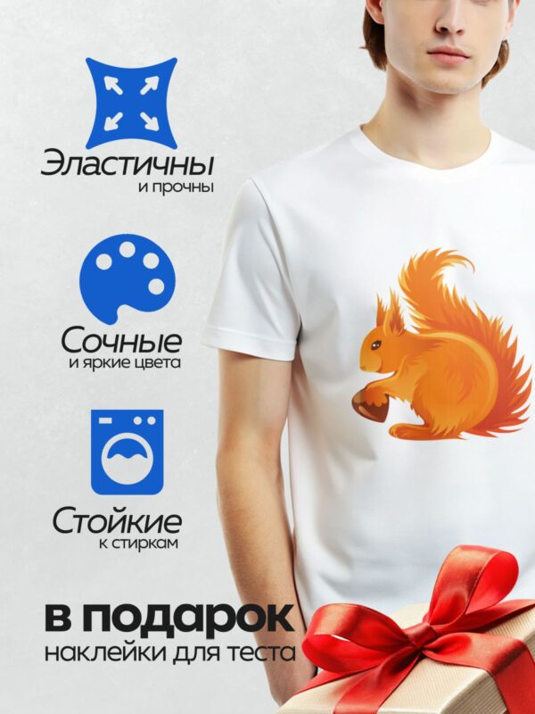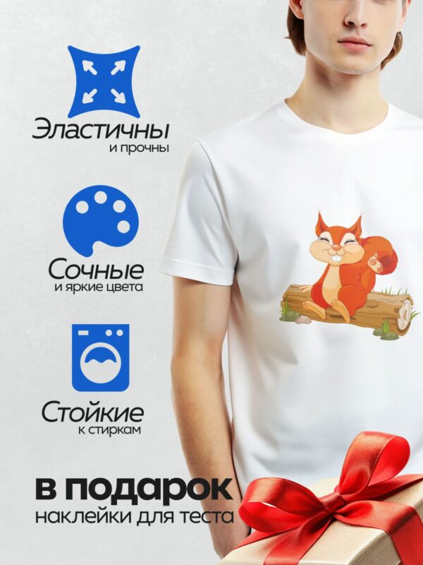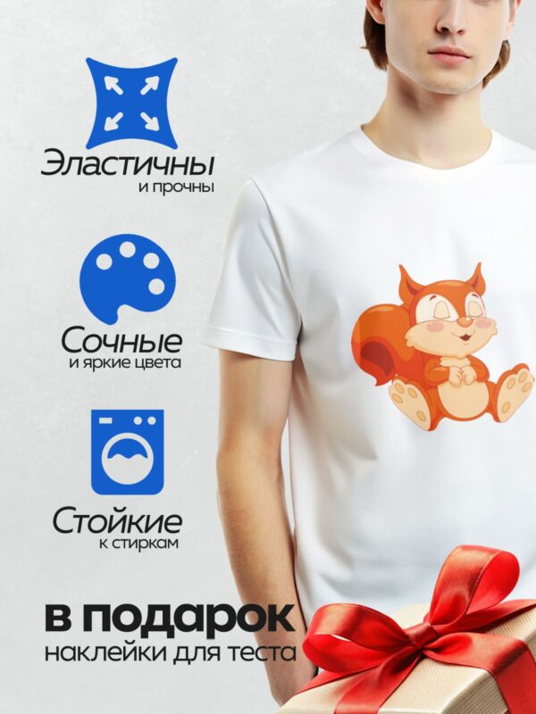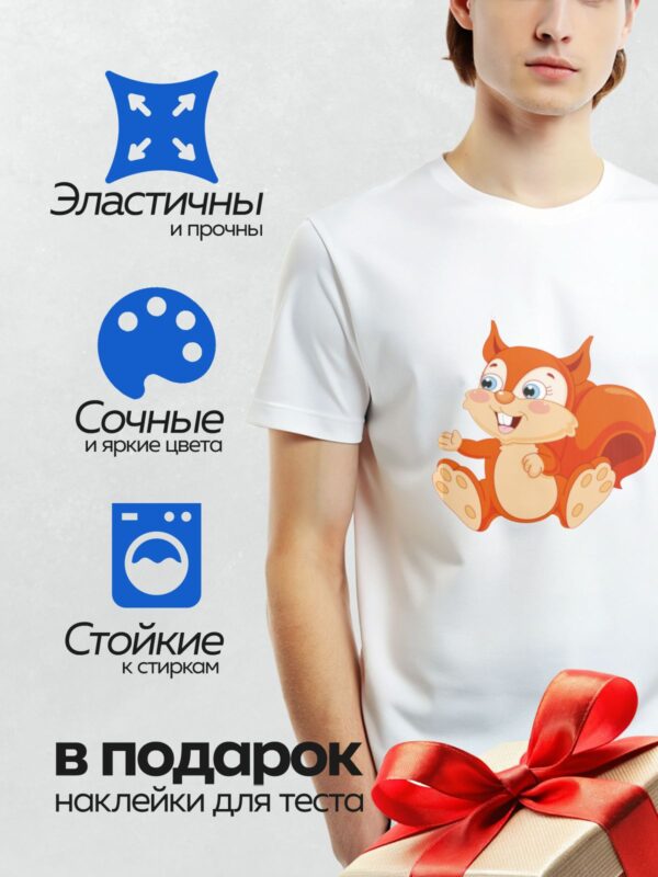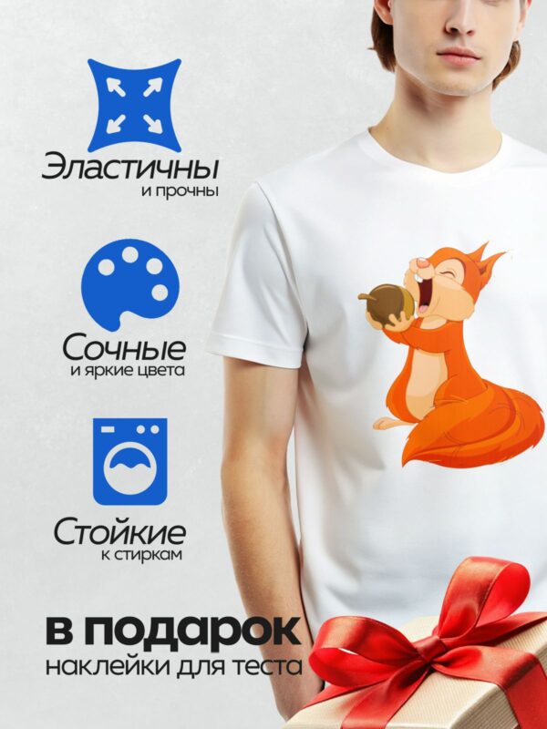 Термонаклейка на одежду DTF / Мультяшная белка с большими глазами и пушистым хвостом.