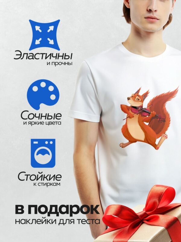 Термонаклейка на одежду DTF / Мультяшная белка играет на скрипке.